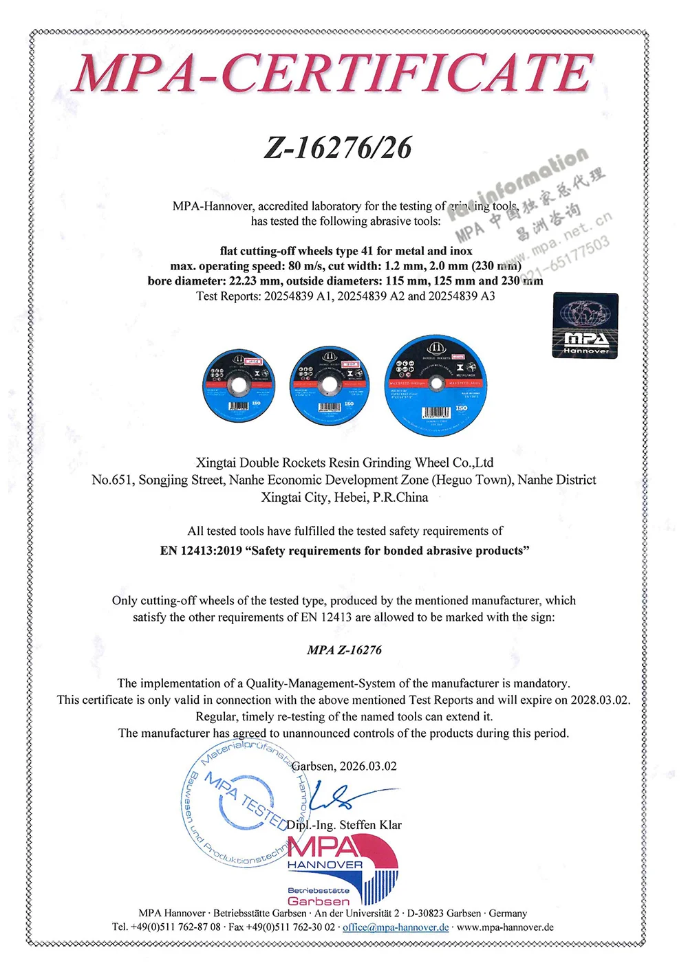 Xingtai Double Rockets Resin Grinding Wheel Co.,Ltd. located at Xingtai City, Hebei Province of China, is a resin grinding wheel manufacturer integrating R&D, production and sales.